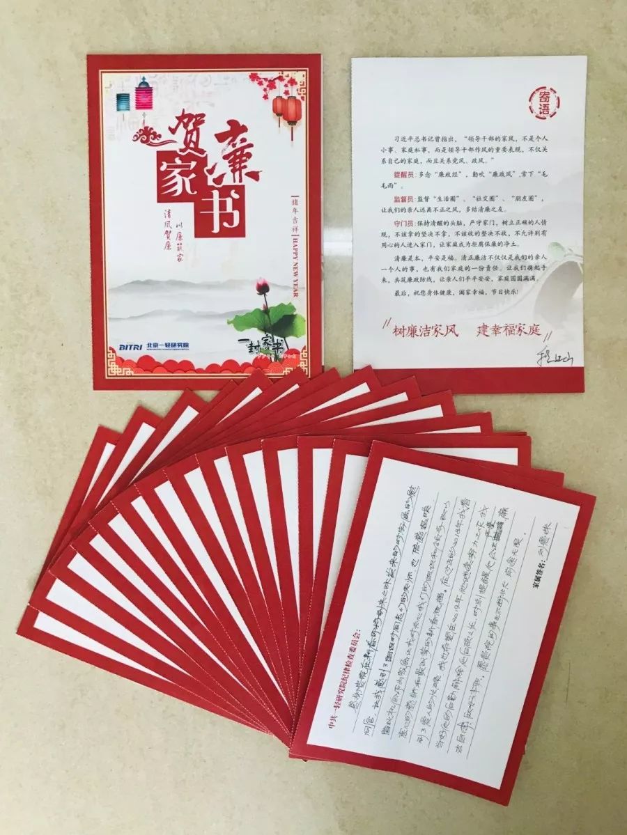 一輕研究院黨委、紀委在節日到來之際,向院領導班子成員、中層干部、重點崗位職工的家屬寄出了一份《廉潔家書》。